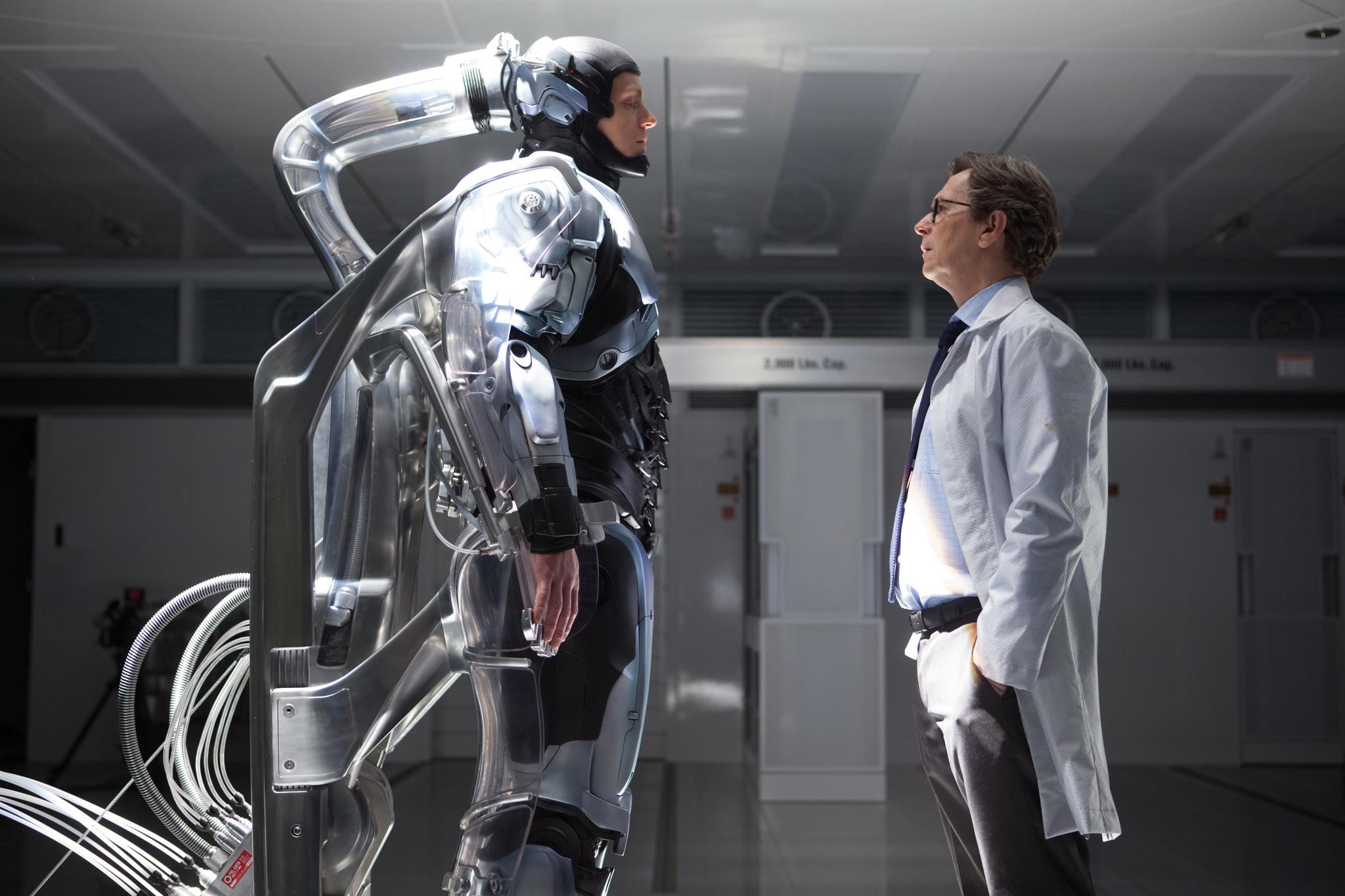 There truly is a magic to Gary Oldman that sells any role that he steps into. As Dr. Norton, Oldman holds onto the most conflicted character of the film, as he struggles with what he wants in way of the advancement of robotics for helping people and what he believes to be wrong, like operating on Murphy’s brain when he does not comply the way that Sellars would like him too. Murphy has conflicting emotions as well, but like most of his become robotic at a certain point in the film, Oldman’s character remains the only raw emotion to take hold throughout most of the film. Cornish spends most of the film crying and seeing as how her husband is dead, I say rightfully so, but never being allowed to shine, her role becomes ladened with depression and nagging. Although it is nice to see Keaton working again, he and Haley share the same bad guy personas that make you dislike them and not in the way that you love to hate certain villains, but simply not enjoying their time on the screen.